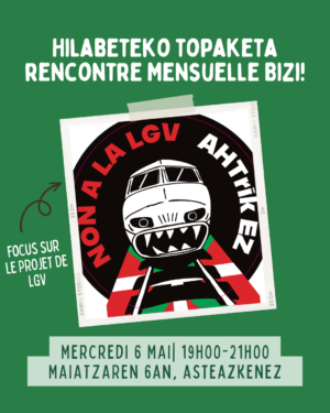À la veille du premier conseil communautaire lors duquel se tiendra l’élection du président de la CAPB, l’association Bizi! appelle les élu·es communautaires à voter pour un élu qui s’est engagé à mettre en œuvre le Pacte pour le climat et les habitants du Pays Basque. C’est le cas de Jean-René Etchegaray et d’Alain Iriart, …