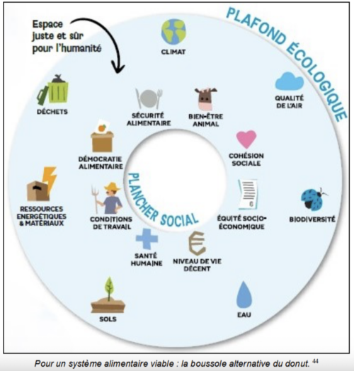 44 La « théorie du donut » a été élaborée par l’économiste britannique Kate Raworth. Elle est fondée sur les travaux académiques qui ont mis en lumière les limites écologiques de la planète et constituent un « plafond » à ne pas dépasser pour préserver les écosystèmes et la vie sur Terre. Kate Raworth a ajouté à ce cadre un « plancher » de justice sociale qui matérialise les limites socio-économiques qui découlent des droits humains et des besoins essentiels attachés à chaque personne pour assurer son épanouissement.