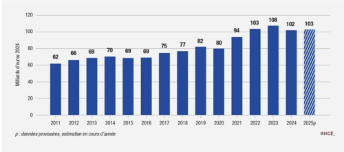 Alors qu’ils devraient fortement diminuer, les investissements fossiles connaissent une légère croissance depuis 2022. A l’inverse, la nécessité de réorienter les financements vers des solutions bas-carbone se heurte pourtant à un ralentissement des investissements pour le climat. Selon l’Institut d’économie pour le climat, après une progression soutenue entre 2021 et 2023, ils se sont établis à 102 milliards d’euros, soit une baisse de 5 % par rapport à l’année précédente. Cette diminution concerne particulièrement la construction performante, la rénovation énergétique et certaines filières renouvelables, telles que l’éolien en mer et le biométhane. Les premières estimations pour 2025 confirment cette tendance, avec un niveau quasi stable à 103 milliards d’euros.