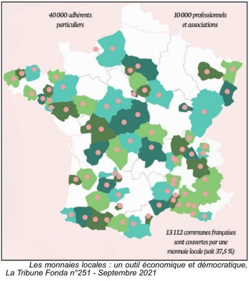 En France, les Monnaies Locales Complémentaires (MLC) se développent depuis 2010 et disposent d’une base juridique depuis 2014, avec l’adoption de la loi n°2014-856 du 31 juillet 2014 relative à l’économie sociale et solidaire. On en dénombre aujourd’hui 82, ce qui couvre environ 37,5 % des communes du pays. Une unité de monnaie locale a la même valeur comptable et fiscale qu’un euro (1 eusko = 1 euro). Il s’agit d’un dispositif monétaire qui ne peut être utilisé que sur un secteur restreint, une commune ou une communauté de communes, et destiné à circuler dans une économie marchande locale. En effet, l’impossibilité pour la monnaie d’être épargnée ou de quitter le territoire nous oblige à la faire circuler localement. Les monnaies locales sont des moyens utiles pour relocaliser l’économie et accélérer la métamorphose écologique. À la différence d’un euro, qui va rapidement quitter le territoire et peut finir sur les marchés financiers, la monnaie locale va circuler uniquement au sein de l’économie réelle du territoire et soutenir l’emploi local.