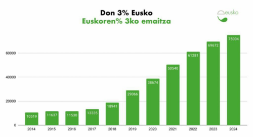 L’eusko est également une monnaie solidaire, grâce au mécanisme du Don 3 % qui est un mécanisme de redistribution aux associations. Ce dispositif soutient des initiatives dans des domaines variés tels que l’environnement, la solidarité, l’éducation, la langue basque, l’agriculture paysanne, la culture ou le sport. À ce jour, plus de 390 000 eusko ont déjà été versés à 70 associations, sans coût pour les utilisateurs.