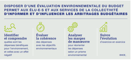 Les collectivités territoriales, leurs établissements et groupements possèdent environ 20 % du parc immobilier public et supportent près de 60 % de l’investissement public civil (construction, transports publics, développement de nouvelles technologies…). C’est pourquoi depuis cette année 2025 (à partir de l’exercice 2024), les collectivités de plus de 3500 habitant·es ont l’obligation de produire une nouvelle annexe environnementale «Impact du budget pour la transition écologique», rattachée au compte administratif ou au compte financier unique. Celle-ci ne s’applique qu’aux investissements et ne concerne pour cette année que l’axe « Lutte contre le changement climatique » qui correspond aux objectifs visés par les politiques d’atténuation du changement climatique, dont la réduction des gaz à effet de serre et la création de puits de carbone. A partir de l’année prochaine, elle devra aussi intégrer l’axe « Préservation de la biodiversité, protection des espaces naturels, agricoles et sylvicoles ».