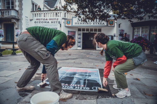 Ce mercredi 15 octobre, une vingtaine d’activistes de Bizi! ont dénoncé fermement les “6 années d’inaction climatique” de Christian Devèze à Cambo-les-Bains en recouvrant d’affiches la façade de la mairie. Par cette action, Bizi! met en lumière l’apathie face à l’urgence climatique, la mauvaise foi du maire et la trahison des engagements pris en amont des élections municipales de 2020 en signant le Pacte de métamorphose écologique du Pays Basque.