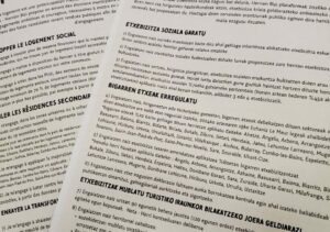 Auzolan, Etxebizitza eskubidearen Eguna, urriaren 10ean eta 11n Baionan ospatu da. Bizi! barne duen eta 32 erakunde biltzen dituen Herrian Bizi – Se loger au Pays plataformarentzat parada izan da 2026ko herriko bozetan hautagai diren taldeentzat tokiko mailako etxebizitza politika ausart eta deliberatu baten aldeko neurri sorta aurkezteko. 17 neurri horiek 6 ardatz nagusitan banatzen …