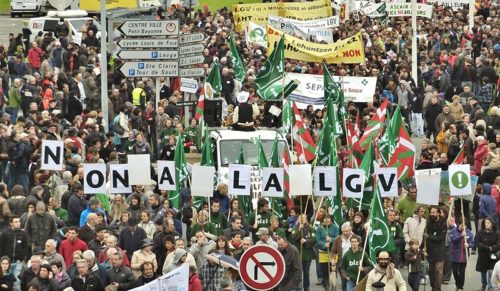 Depuis 30 ans, les habitant.es du Pays Basque se prononcent massivement contre, dénonçant son inutilité, son coût et son impact écologique. 10 000 personnes avaient ainsi manifesté dans les rues de Bayonne en 2012. Les élus locaux s’y opposent également en grande majorité. Les rapports émanant d’autorités et commissions publiques remettent régulièrement en cause sa rentabilité, son utilité et son impact environnemental et, en 2013, le gouvernement enterre le projet.
